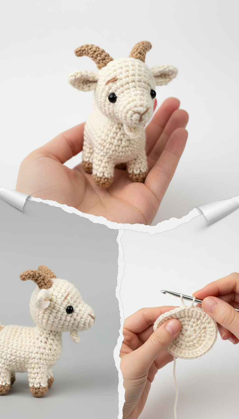 Bring a touch of farm charm to your home with this adorable amigurumi goat! Perfect for animal lovers and crochet enthusiasts alike, this pattern creates a sweet, palm-sized companion. Whether you’re looking for a quick project or a delightful gift, this little goat is sure to bring a smile. Get ready to hook your way to a new favorite fluffy friend!
