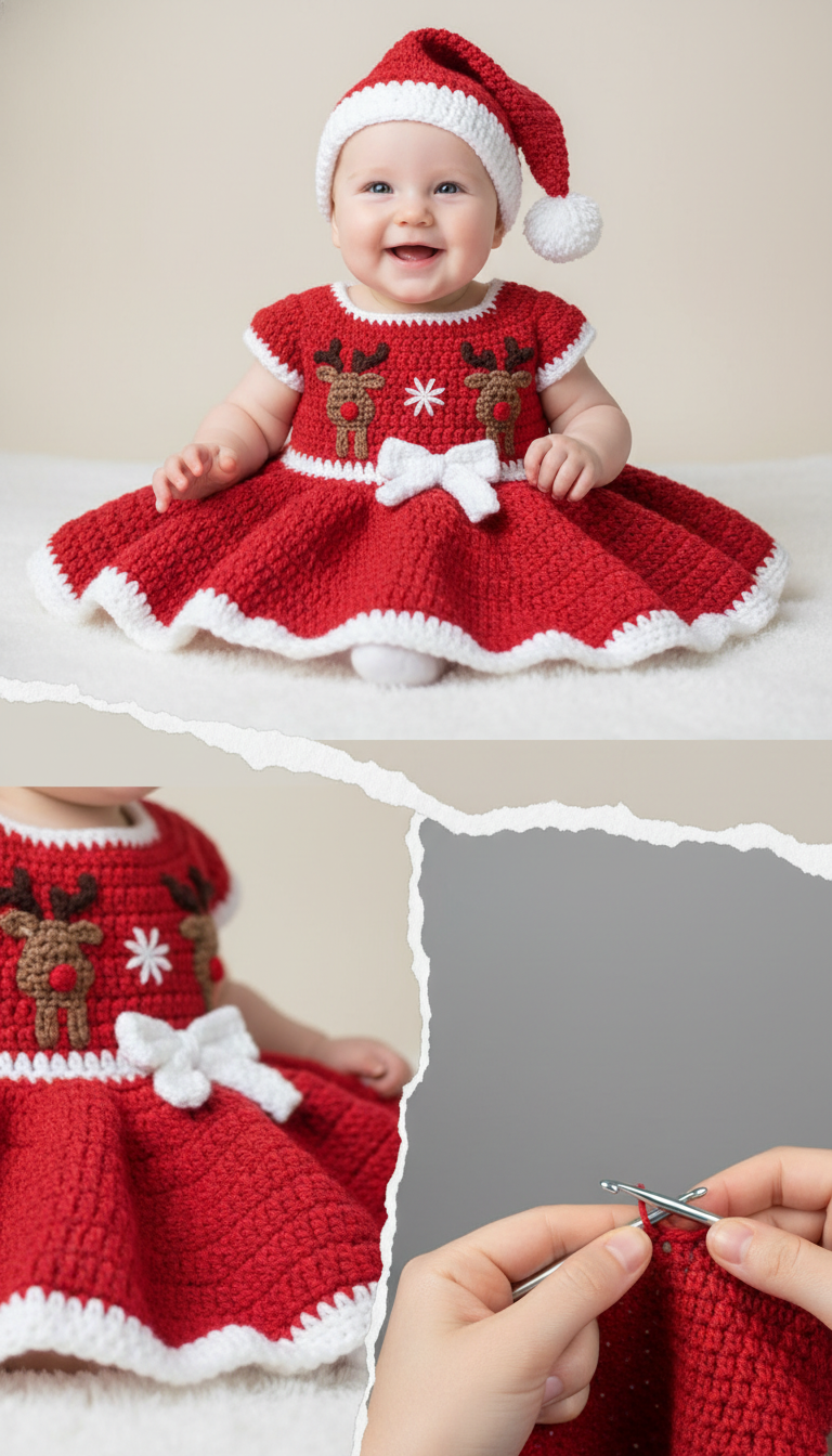 Get ready for the most enchanting holiday photos with our adorable Crochet Baby Santa Dress and Hat Pattern! This festive outfit, complete with charming reindeer and snowflake appliques, is perfect for your little one’s first Christmas. Create a handmade keepsake that will be cherished for years to come and capture those magical festive moments.