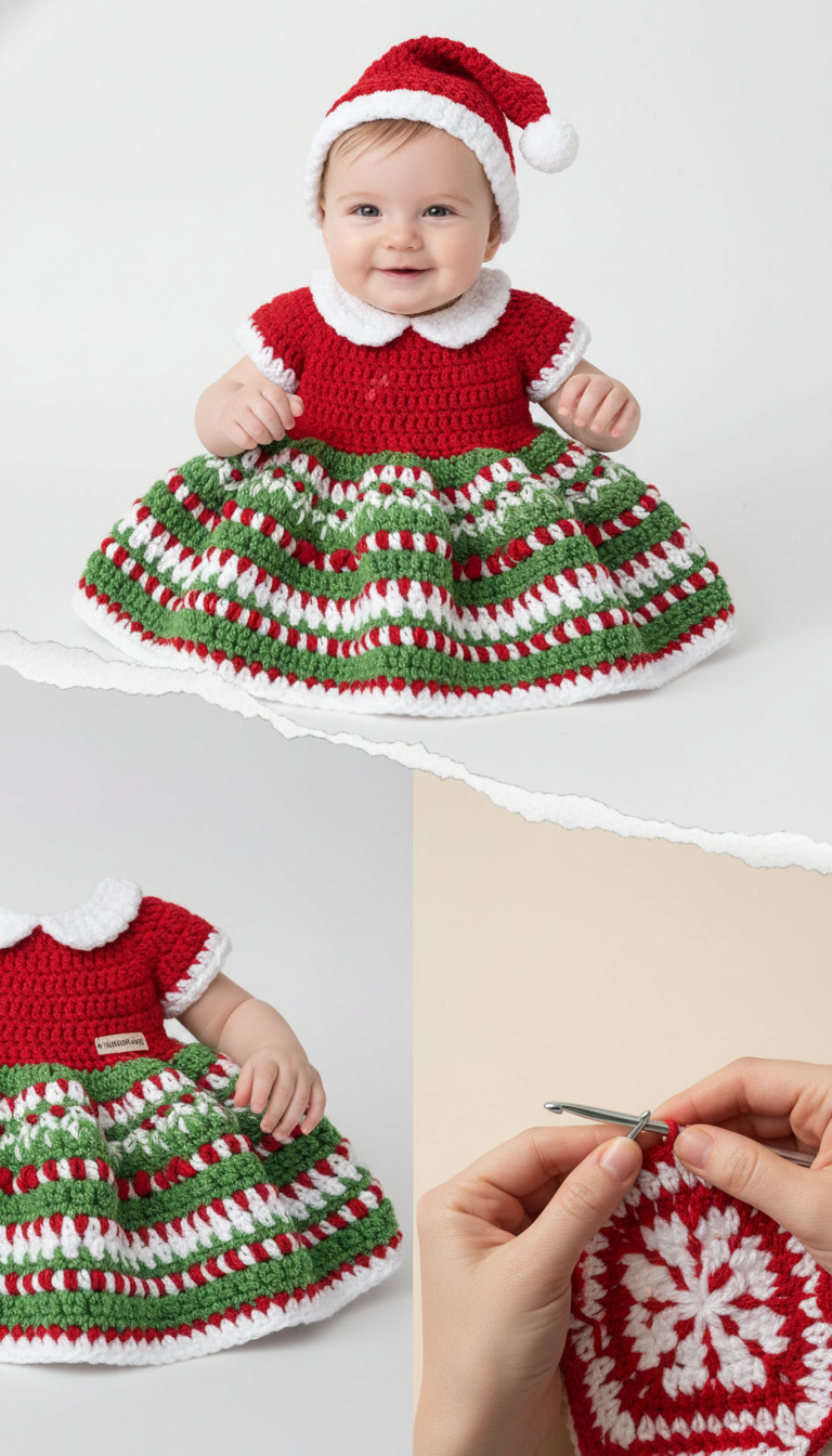 Crochet Pattern: Adorable Crochet Christmas Baby Dress & Santa Hat Pattern