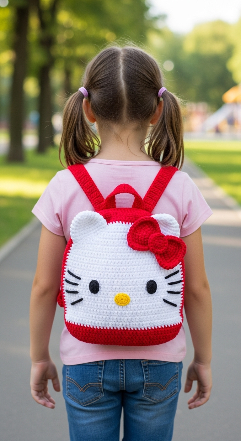 Crochet Pattern: Adorable Crochet Hello Kitty Backpack Pattern for Kids!