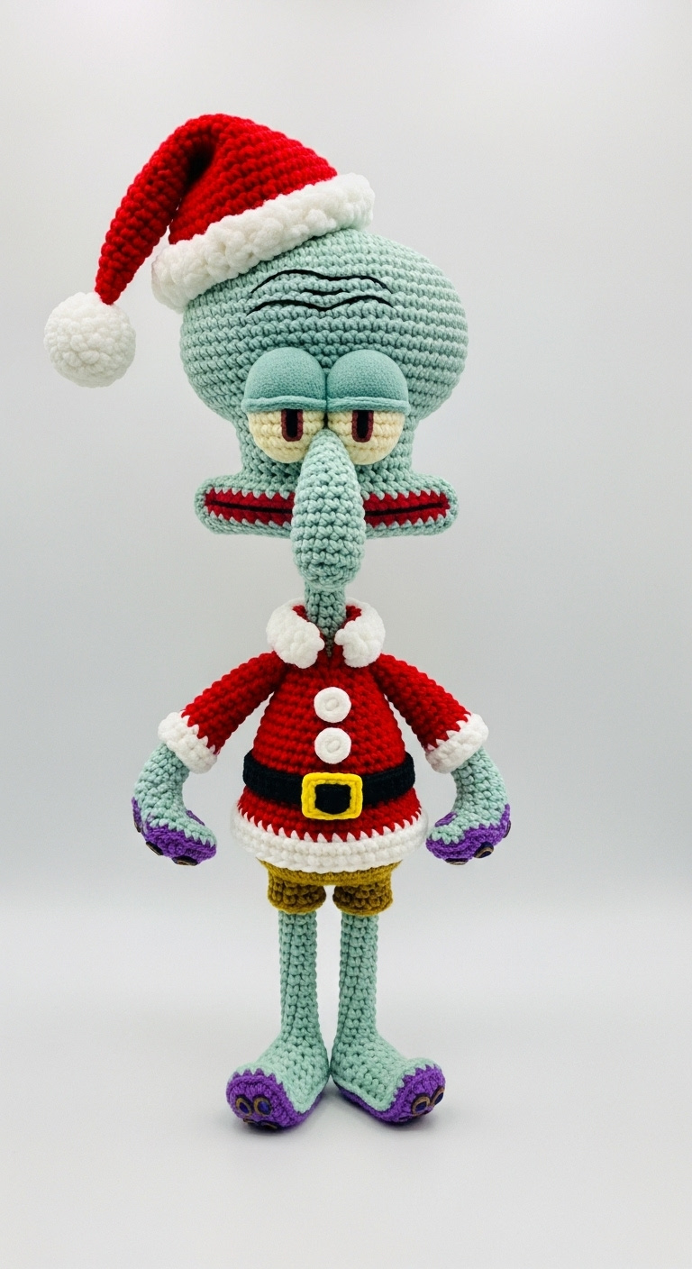 Whether you’re looking for a special addition to your holiday decor or a one-of-a-kind gift for a Spongebob enthusiast, this festive Squidward crochet doll is sure to impress. Its intricate stitching and vibrant colors make it a standout piece, showcasing the artistry of amigurumi. Imagine the smiles this grumpy-yet-festive character will bring during the holidays. This handmade creation embodies both whimsy and craft, making it a treasured item for years to come.