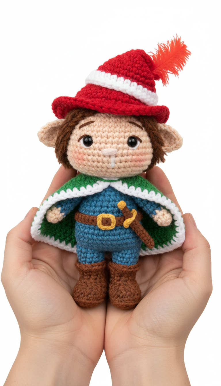 Embark on a magical journey with your crochet hook to create this charming Amigurumi Forest Elf Doll! Perfect for fantasy lovers and skilled crafters, this pattern guides you through making a delightful character complete with a feathered hat, flowing cape, and even a tiny sword. Bring a touch of whimsy and adventure to your handmade collection or create a special gift for a loved one.