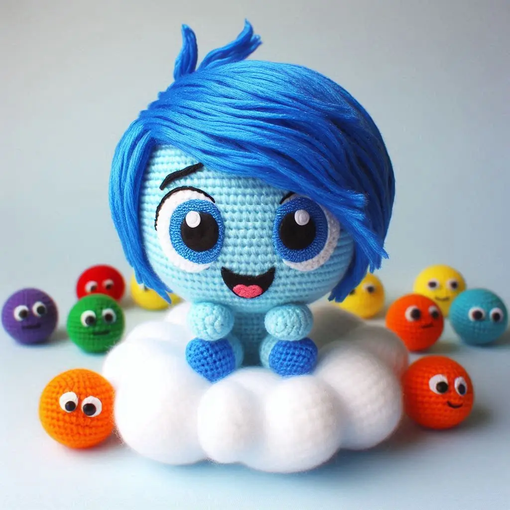 Amigurumi blue crochet doll on a cloud is a whimsical and delightful project that will captivate both children and adults. This charming blue doll, with its vibrant blue hair and large expressive eyes, sits happily on a fluffy white cloud, surrounded by colorful, smiling crochet balls. Perfect for crocheters of all skill levels, this project allows you to showcase your creativity and enjoy the art of amigurumi.