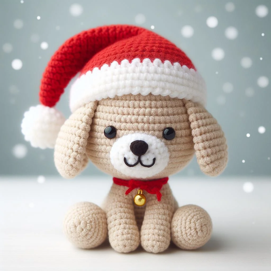 The design of the amigurumi puppy is characterized by its soft, plush appearance, made using yarns in shades that mimic a real puppy’s fur. The Christmas hat, typically in bright red and white, adds a festive flair to the puppy. This project is not only a wonderful way to practice and enhance crochet skills but also a means to bring a personalized, cheerful element to holiday decor. Its size and portability make it a fun project to work on during cozy evenings.