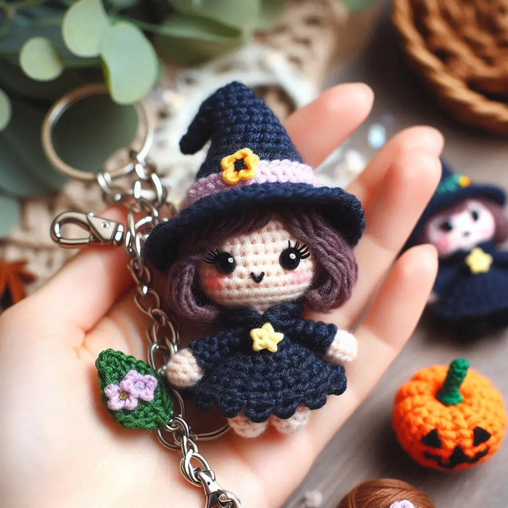 Amigurumi Witch Keychain is a charming and whimsical accessory perfect for the Halloween season. This delightful crochet project features an adorable little witch with a pointy hat, a cute dress, and a cheerful expression, making it an ideal addition to your keychain collection. Crafted with love and attention to detail, this amigurumi piece is sure to bring a touch of magic wherever you go.