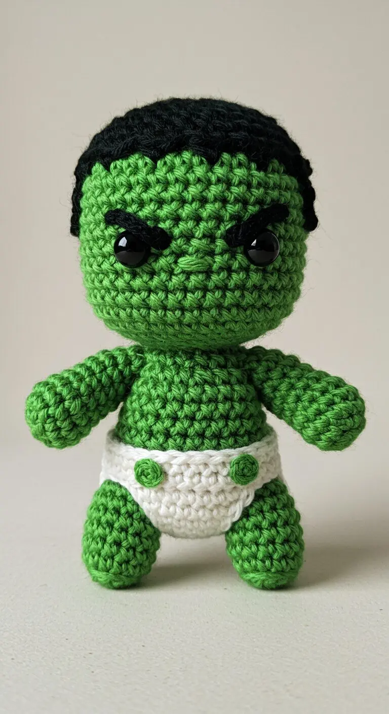 If you’re a fan of superheroes and love handmade crafts, this Baby Hulk crochet amigurumi is the perfect collectible. With his iconic green skin and angry eyes, this little guy is full of personality, despite his tiny size. It’s a great piece for collectors, comic book lovers, or anyone who enjoys unique and adorable handmade figures.