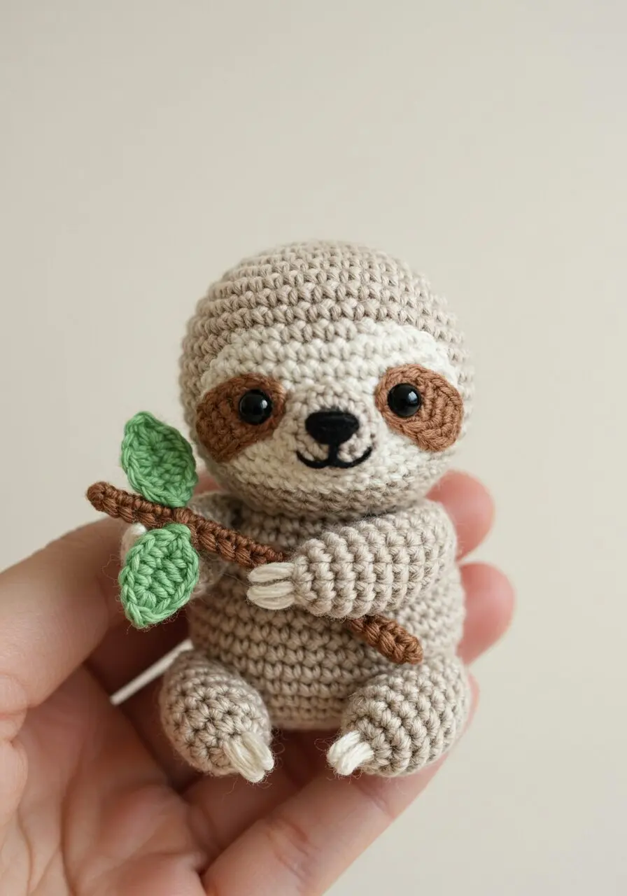 Perfect for animal lovers, this baby sloth amigurumi will win hearts with its gentle expression and cuddly form.