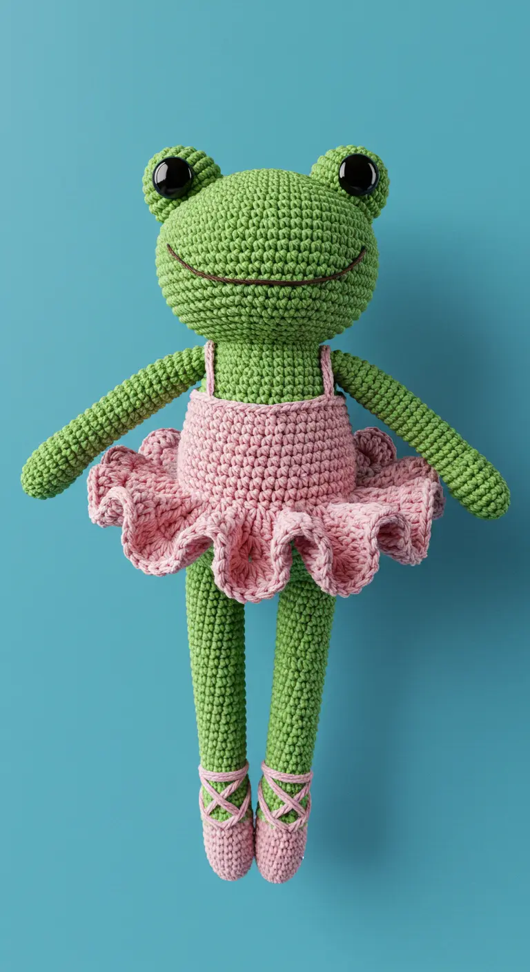 The frog amigurumi isn’t just a toy—it’s a ballerina full of personality and flair, sure to charm kids and adults alike.