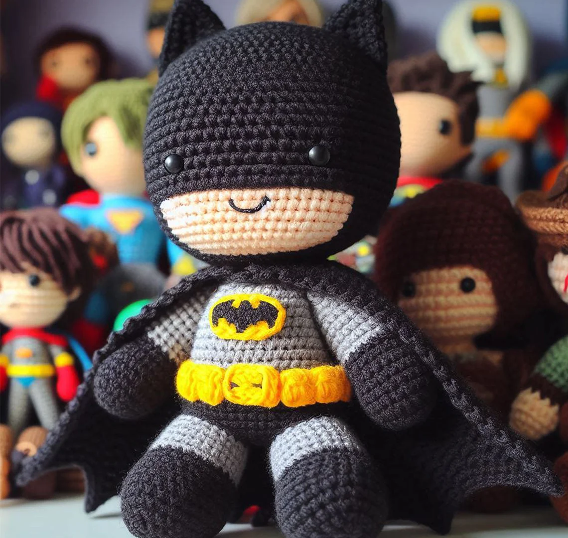 In the shadows of the amigurumi world, the Batman amigurumi stands as a vigilant protector of the crafting community. This crocheted caped crusader captures the essence of Gotham City’s dark knight with meticulous detail and careful stitches. From the pointed ears of his cowl to the flowing cape at his back, this miniature Batman is a symbol of justice in yarn form. Crafters take pride in bringing to life his iconic Batsuit, complete with its utility belt and bat emblem, all the while channeling the brooding demeanor and heroic stance of the beloved superhero.