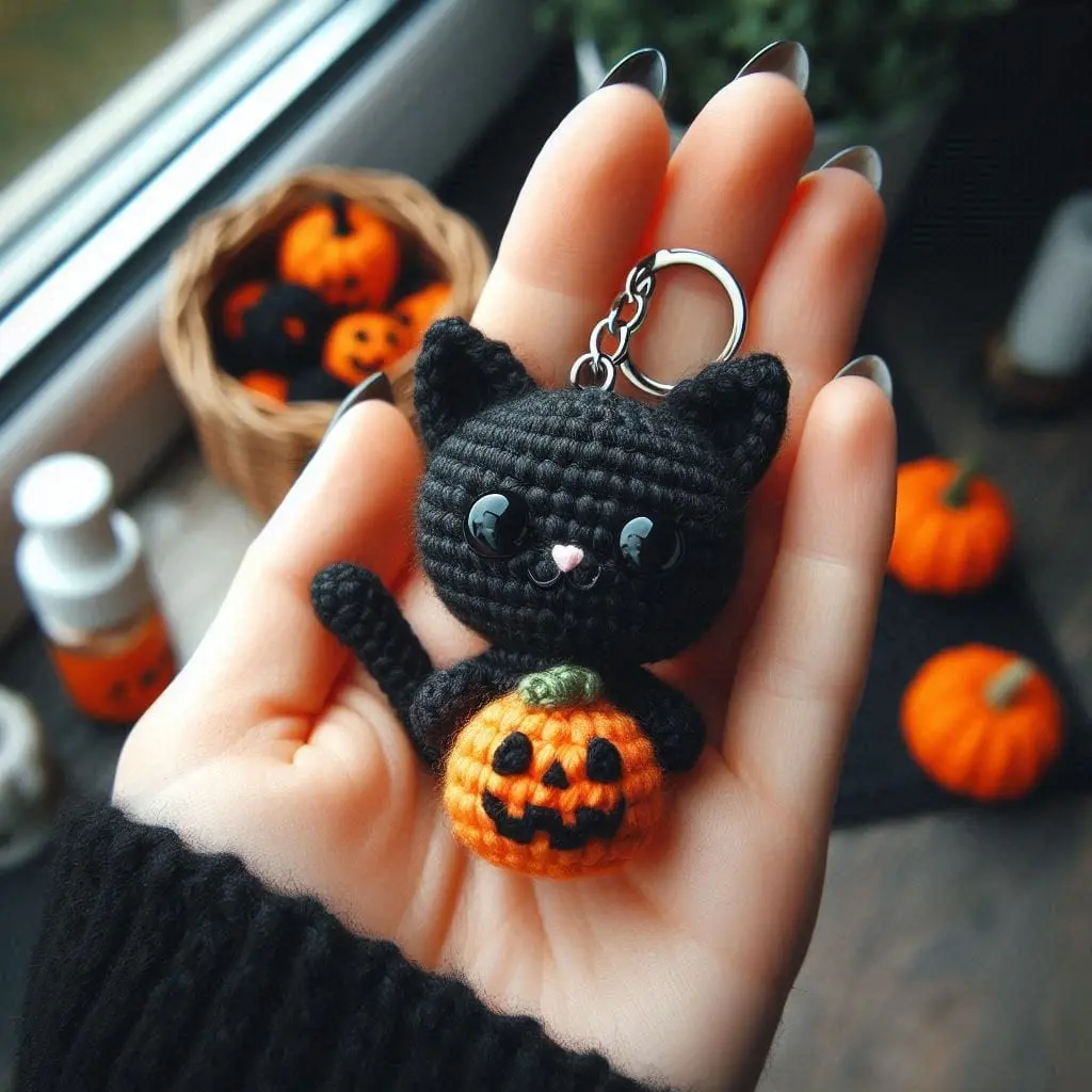 Making your own Black Cat Amigurumi Keychain is a simple and fun project. Using basic crochet techniques, you can customize the pumpkin and the cat, making the keychain unique. This Black Cat Amigurumi Keychain is an excellent handmade gift idea for Halloween and a fun piece for amigurumi collectors!