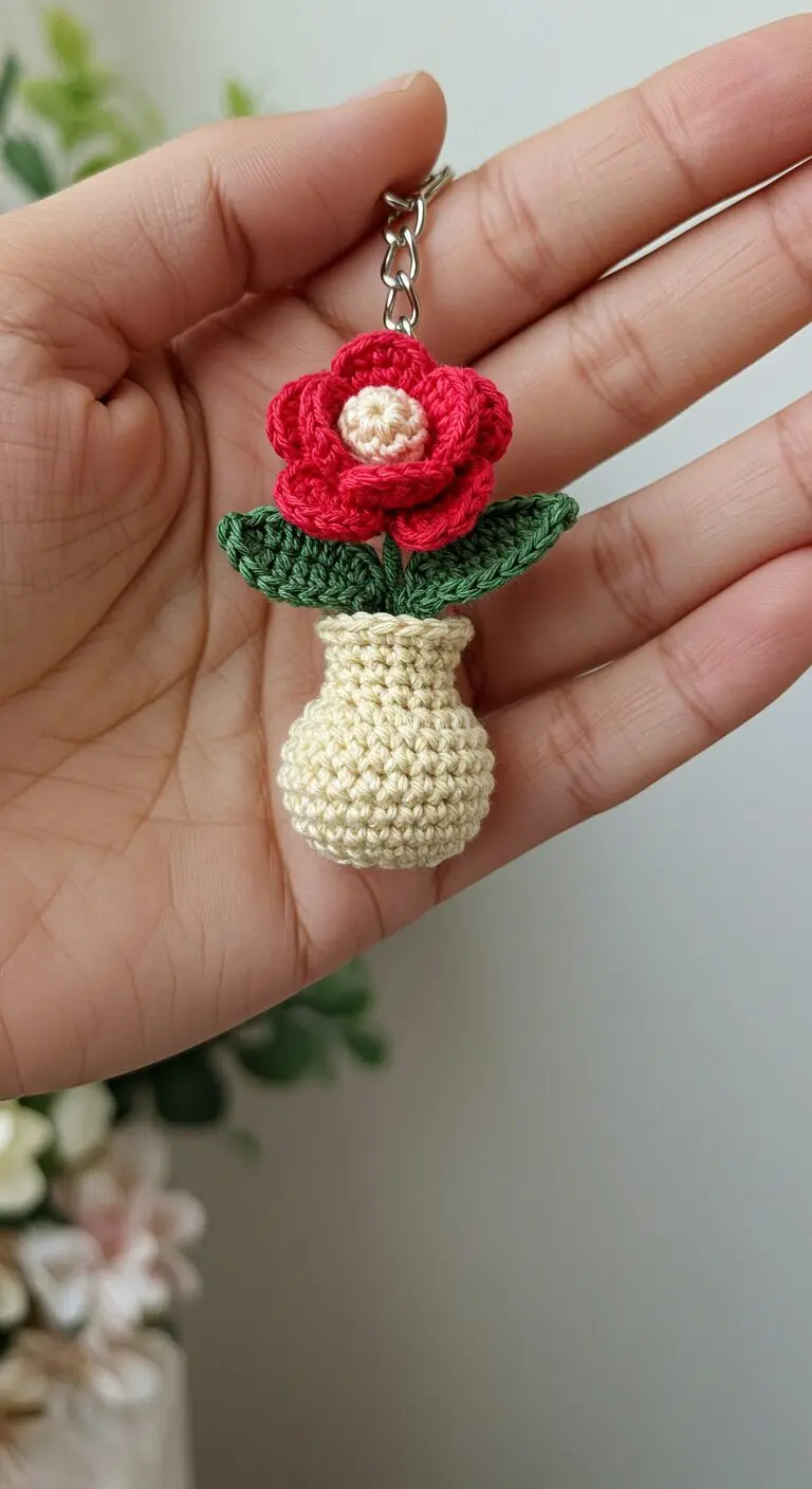Blooming Beauty: Crochet Your Own Rose Vase Keychain!