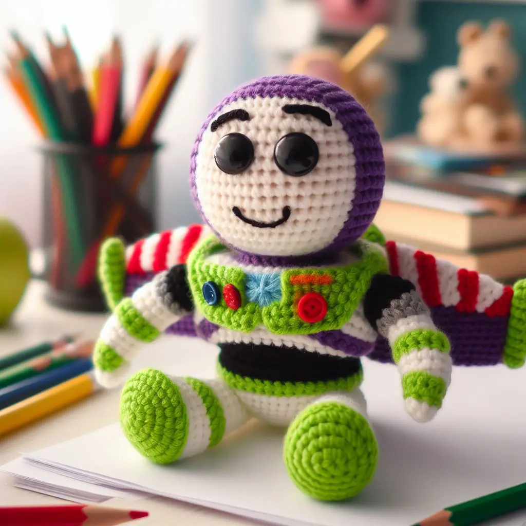 This Buzz Lightyear amigurumi isn’t just a toy; it’s a symbol of childhood wonder and the dreams that inspire us to reach for the stars. It’s perfect for fans of the character, young and old, serving as a reminder that adventure can be found in the most unexpected of places, even in the soft, stitched folds of a handcrafted toy.