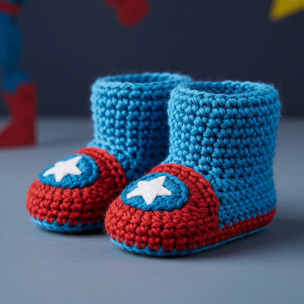 These Captain America Crochet Baby Shoes are the perfect choice for little superheroes. Handmade with vibrant colors and shield details, they bring Marvel magic to any babyโs wardrobe.