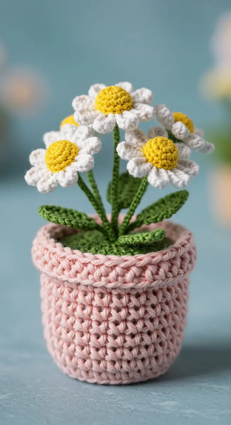 Bring nature’s serenity into your home with handmade chamomile crochet flowers nestled in cozy crochet pots. These whimsical creations are the perfect blend of craftsmanship and charm, offering a peaceful, everlasting floral accent. Whether you’re decorating your workspace, gifting a friend, or brightening a shelf, each design captures the essence of chamomile in soft yarn and delicate stitches.