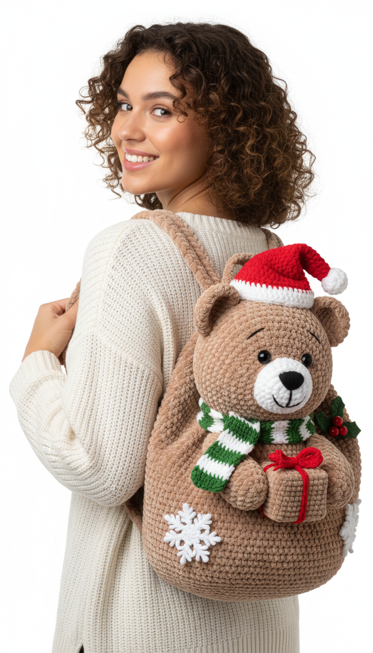 Get ready to spread some holiday cheer with this adorable Christmas Bear Crochet Backpack! Perfect for gifting or carrying your festive essentials, this charming amigurumi creation brings warmth and whimsy to any outfit. Imagine the smiles this plush, bear-shaped backpack, complete with a Santa hat, scarf, and little gift, will bring during the festive season. It’s a delightful project for crocheters looking for a unique and practical holiday make.