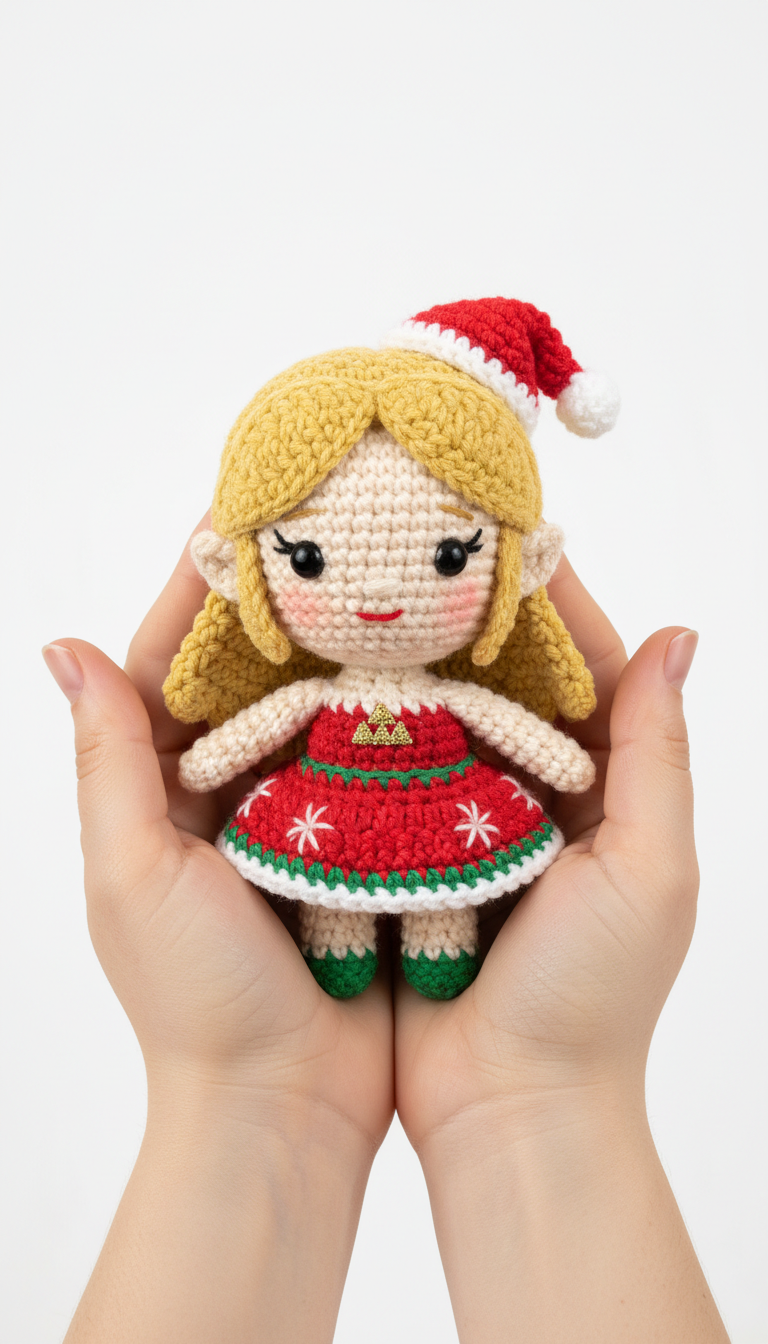 Bring a touch of holiday magic into your home with this adorable Christmas Elf Amigurumi! Perfect for festive decor, a special handmade gift, or simply to add cheer to your crochet collection. This delightful little elf, complete with a tiny Santa hat and a festive dress, is sure to capture hearts and spread joy throughout the season.