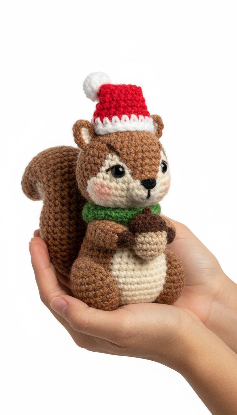 Get ready to spread some holiday cheer with our adorable Christmas Squirrel Amigurumi! This detailed crochet pattern allows you to create a sweet, festive companion, complete with a tiny Santa hat, a cozy green scarf, and a little acorn. Perfect for decorating your home or gifting to loved ones, this amigurumi project is sure to bring a smile to everyone’s face this season. Let’s start crocheting your new favorite holiday friend!