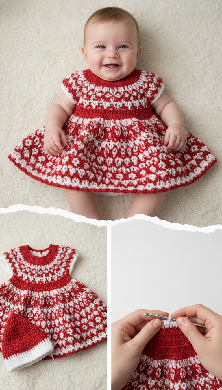 Crochet Pattern: Charming Red & White Crochet Baby Dress Pattern: Perfect for Holidays & Photo Shoots