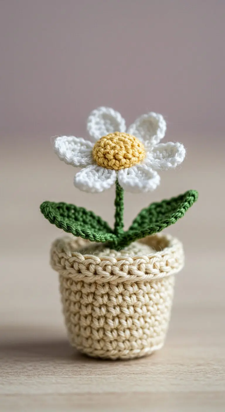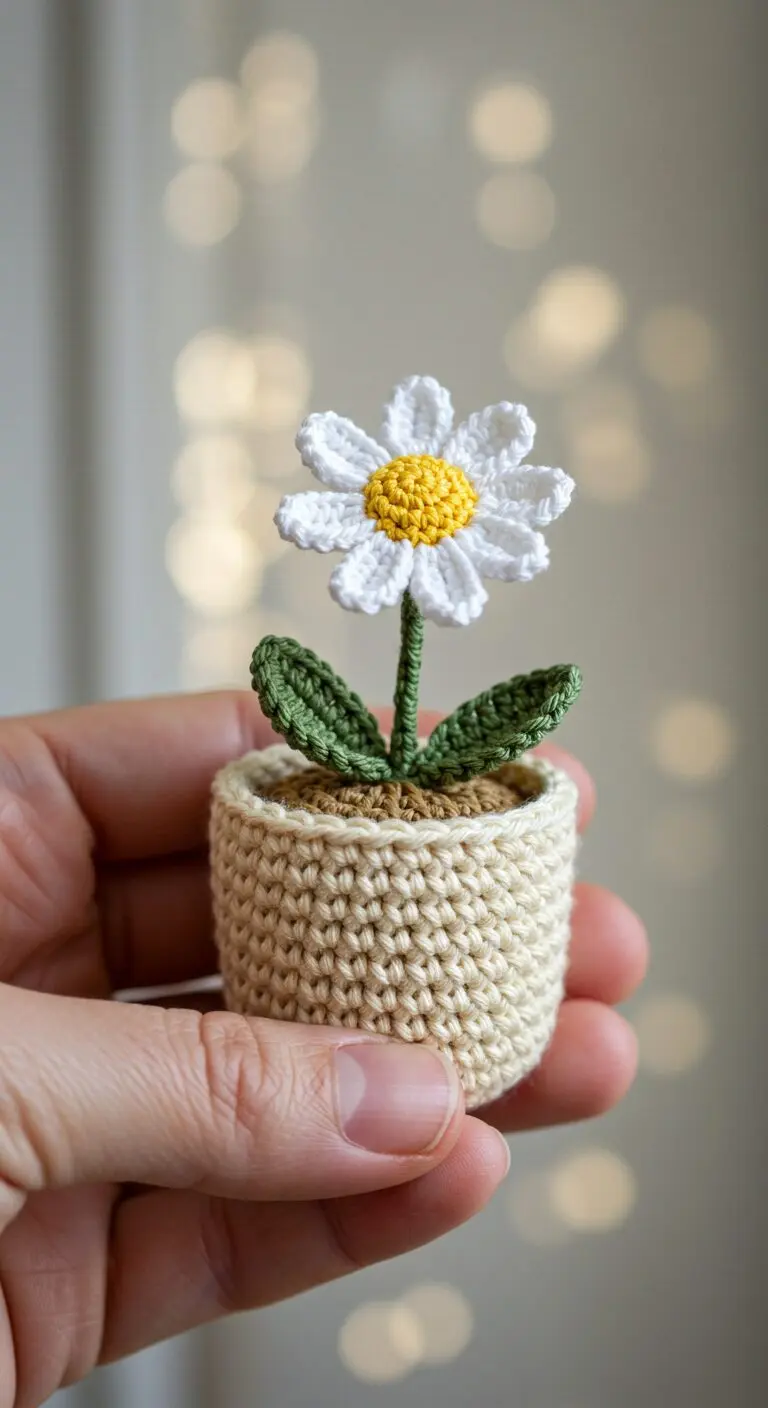 Miniature Crochet Snow Daisy Arrangement
