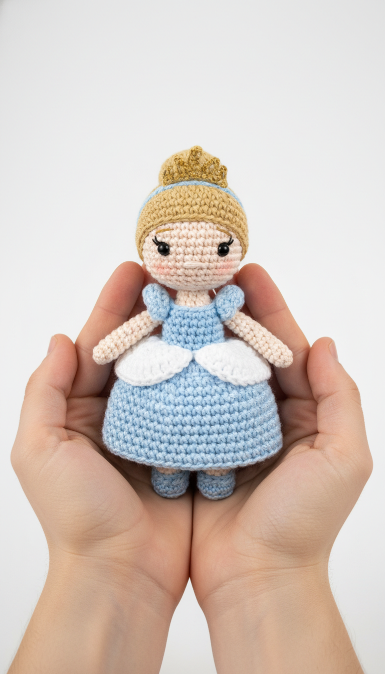 Step into a world of fairytales with this enchanting Cinderella amigurumi doll! Perfectly sized for little hands and big imaginations, this charming princess will bring a touch of magic to any collection. With her signature blue gown, delicate crown, and sweet smile, she’s ready for adventures, making her a truly special handmade treasure for any fan.