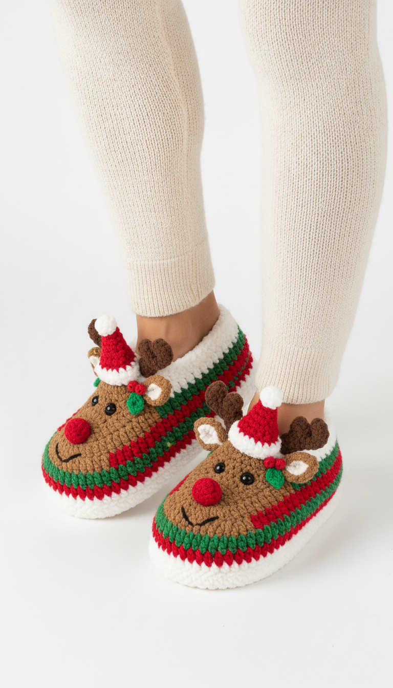 Crochet Pattern: Cozy Crochet Reindeer Slippers Pattern: Your Festive Footwear Guide