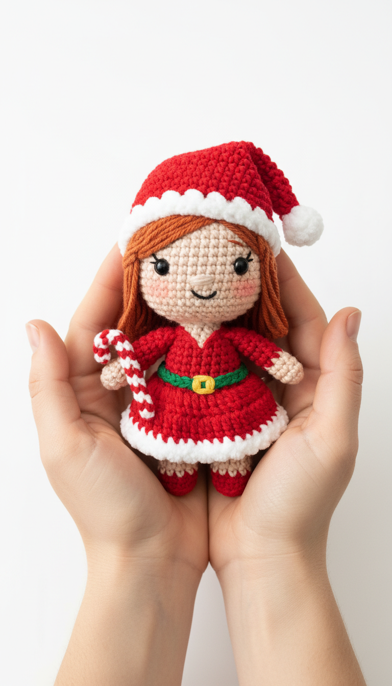 Bring a touch of holiday magic into your home with this adorable Christmas Elf Amigurumi doll! Perfect for festive decor, gifting, or simply adding to your collection of handmade treasures, this charming little helper, complete with her Santa hat and candy cane, is sure to spread cheer. Follow our detailed pattern to create your own lovable holiday companion.