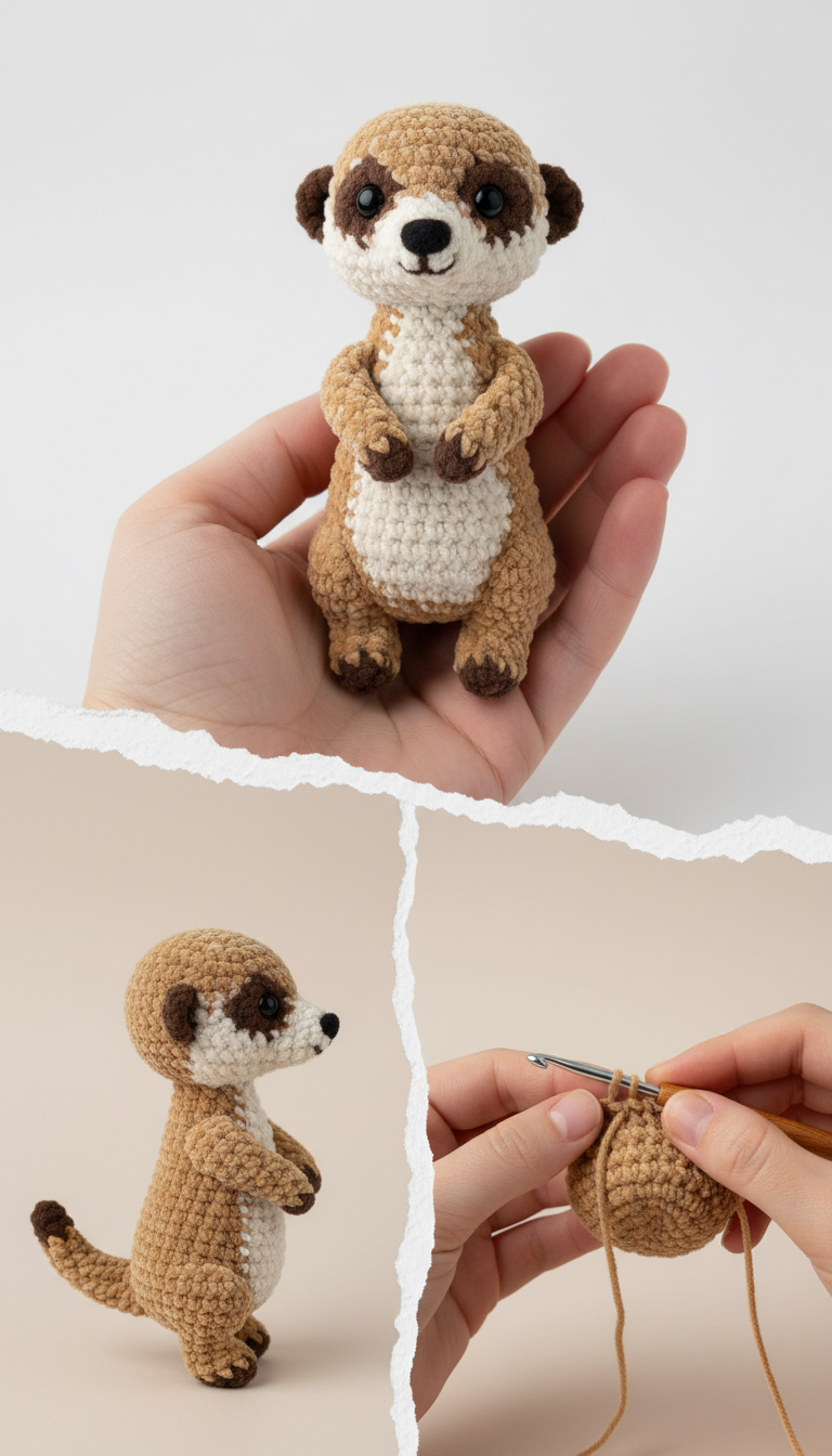 Bring the charm of the savanna into your home with this delightful Amigurumi Meerkat! This detailed crochet pattern guides you through creating your own miniature desert dweller, complete with its distinctive markings and inquisitive pose. Perfect for animal lovers and amigurumi enthusiasts, this pattern will help you craft a cute, stand-alone meerkat toy that’s full of personality and sure to bring a smile.