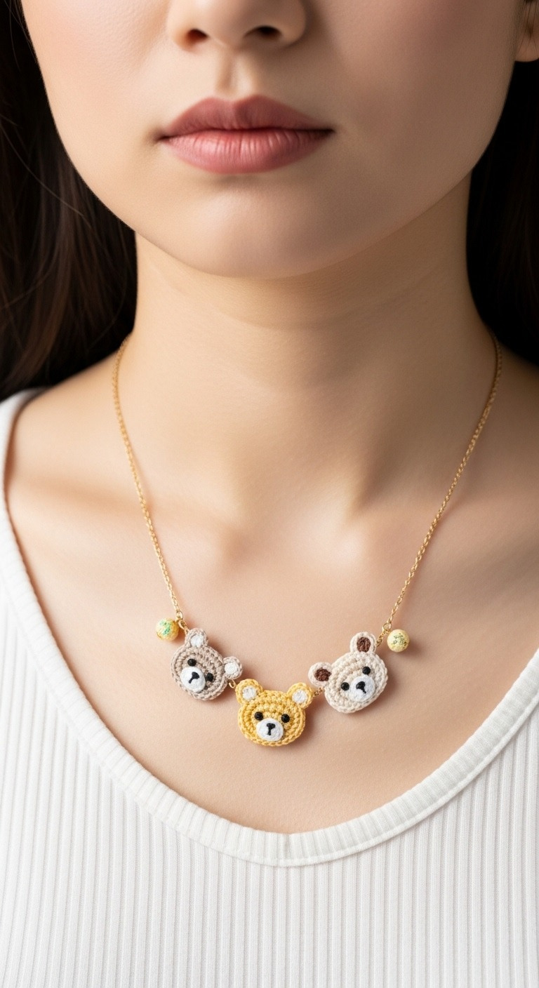 Add a touch of handmade charm to your style with this delightful Miniature Crochet Bear Necklace! Perfect for gifting or a whimsical treat for yourself, this pattern guides you through creating three adorable bear heads to adorn a delicate chain. These tiny companions are surprisingly quick to make and are sure to bring a smile to anyone who sees them. Get ready to crochet your new favorite accessory!
