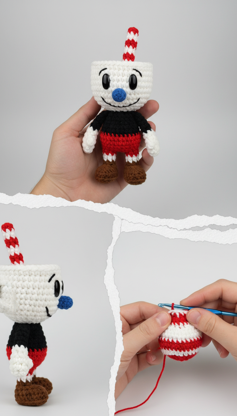 Dive into the whimsical world of Cuphead with this charming amigurumi pattern! Perfect for fans of the classic run-and-gun game, this detailed guide will help you crochet your very own pint-sized hero. Bring the mischievous spirit of Cuphead to life with your hook and yarn, creating a unique collectible or a thoughtful gift.