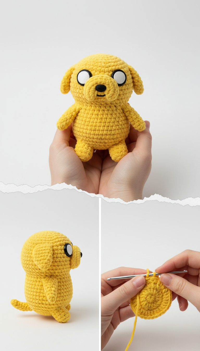 Embark on a mathematical adventure by crocheting your very own Jake the Dog! This beloved shape-shifting companion from Adventure Time is now within your reach. This free amigurumi pattern will guide you step-by-step to create a charming, squishy version of Finn’s best friend. Perfect for fans and crocheters looking for a fun project!