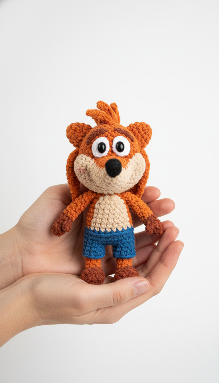 Dive into the world of amigurumi with this vibrant pattern to create a beloved speedy bandicoot character. This finished project captures the iconic look with its spiky hair, cheerful expression, and signature blue shorts. Perfect for fans of classic gaming, this little guy is sure to bring a smile to anyone’s face and makes a fantastic collectible or gift for all ages.