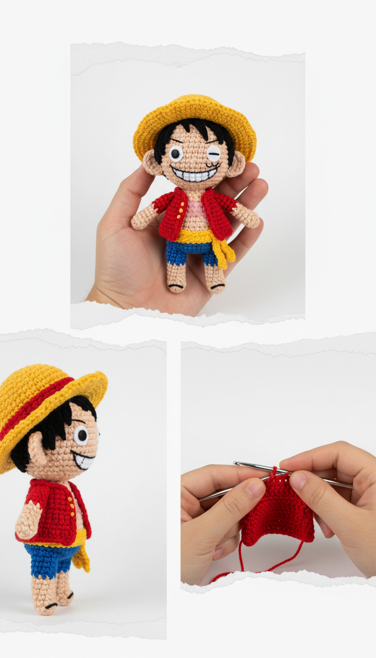Set sail on a crafting adventure and bring your favorite Straw Hat Pirate to life with this detailed Luffy Amigurumi crochet pattern! Whether you’re a long-time One Piece fan or looking for a fun new project, this pattern will guide you through creating your very own Monkey D. Luffy. Perfect for display or gifting, this lovable captain is sure to bring a smile to any fan’s face.