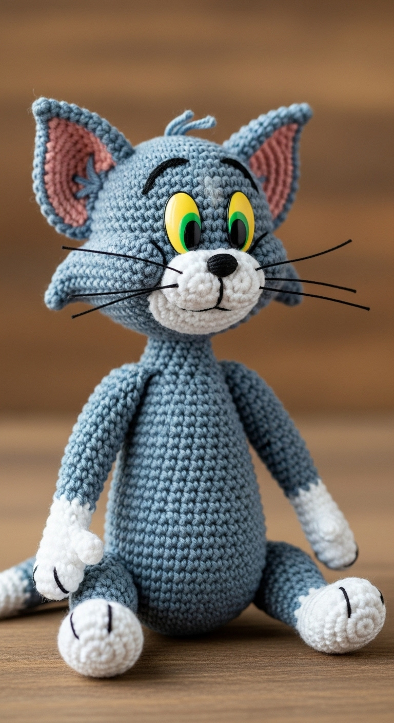 Amigurumi, the Japanese art of crocheting or knitting small stuffed yarn creatures, offers a delightful way to bring beloved characters to life. This charming Amigurumi Tom Cat, meticulously crafted, showcases the intricate details and vibrant personality of the iconic cartoon character. From his signature grey fur to his expressive green eyes, every stitch captures the essence of Tom. Such handmade toys are not just playthings but also cherished pieces of art for fans and collectors alike.