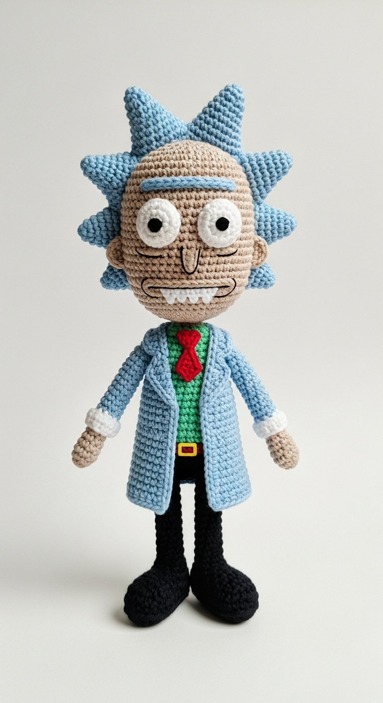 Dive into the whimsical world of amigurumi with this fantastic crochet Rick Sanchez doll. Fans of the hit animated series ‘Rick and Morty’ will appreciate the intricate details captured in this handmade creation. This unique piece showcases the iconic mad scientist with his signature spiky blue hair and lab coat. Creating your own Crochet Rick Sanchez is a rewarding project for any crafting enthusiast.