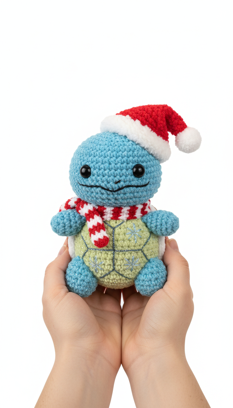 Dive into the holiday spirit with our adorable Christmas Squirtle amigurumi pattern! This charming little turtle, inspired by a beloved character, is decked out in a festive Santa hat and a cozy striped scarf, ready to bring cheer to your home. Perfect for holiday decor, a thoughtful handmade gift, or simply to add a touch of whimsy to your collection, this pattern will guide you to create your own festive friend.
