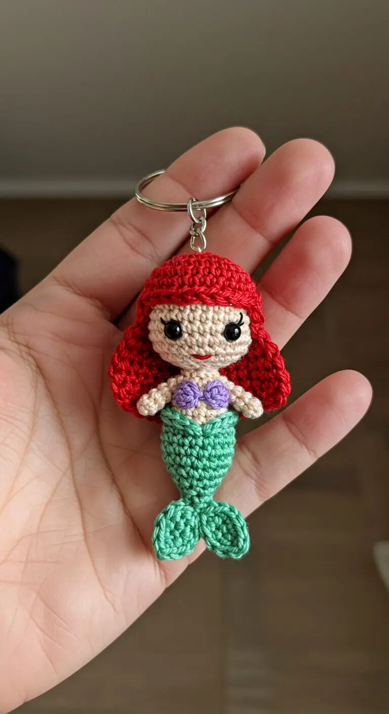 Dive under the sea and crochet your own little mermaid with this adorable Amigurumi Mermaid Keychain Pattern! Perfect for Disney fans and anyone who loves charming, handmade accessories.