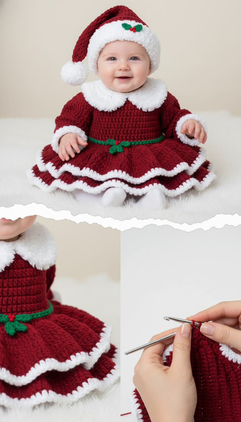 Get ready to spread some serious holiday cheer with this absolutely adorable Crochet Baby Santa Dress Pattern! Perfect for festive photoshoots, Christmas gatherings, or as a thoughtful handmade gift, this charming outfit will turn your little one into the star of the season. Featuring a rich red dress with fluffy white trim and a matching Santa hat, it’s a project filled with love and holiday spirit.