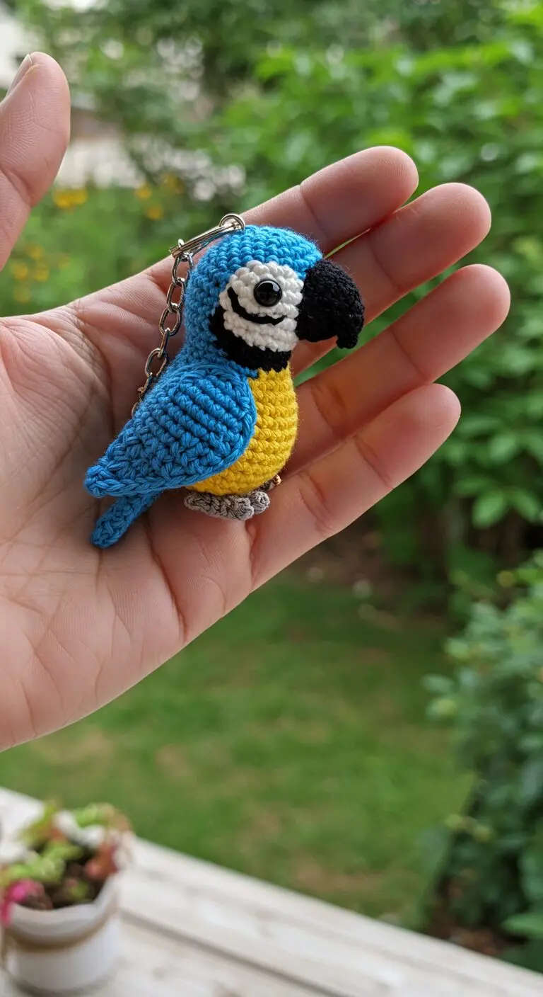 Bring a touch of the tropics wherever you go with this absolutely adorable crochet blue macaw keychain! This vibrant little amigurumi bird is perfect for adding personality to your keys, bag, or as a thoughtful handmade gift for any bird lover.
