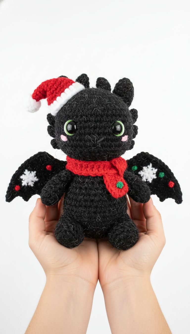 Unleash your inner dragon tamer this holiday season with our adorable Christmas Dragon Amigurumi pattern! This charming little fellow, reminiscent of a beloved Night Fury, is decked out in festive gear, ready to bring cheer to your home. Perfect for dragon enthusiasts and crafters looking for a heartwarming holiday project, this pattern will guide you to create a truly special gift or decoration.