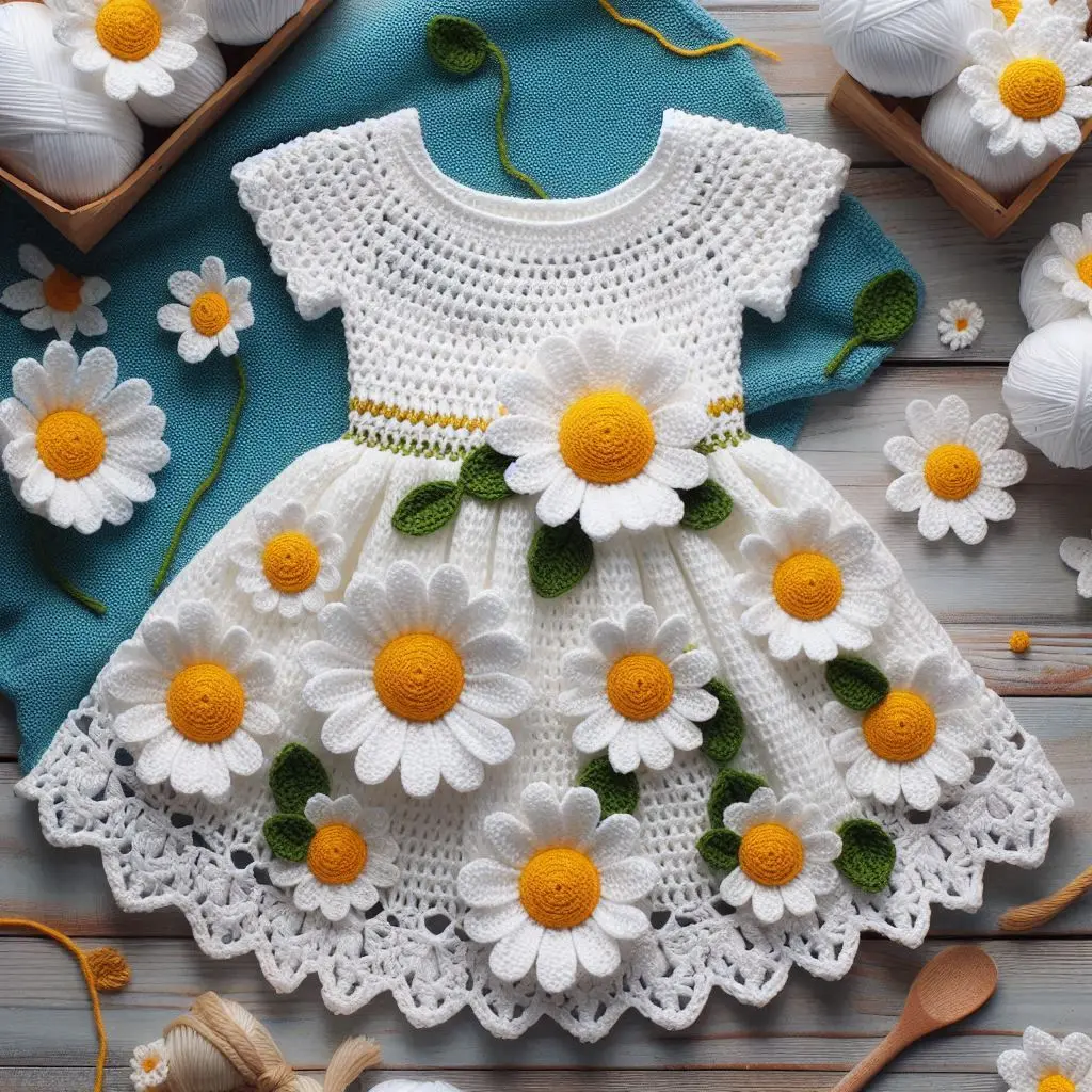 Crochet daisy flower dresses are a delightful way to dress up your little one in a charming, handmade outfit. This crochet daisy flower dress features beautiful daisy appliqués and a lovely lace hem, making it perfect for special occasions or everyday wear. Suitable for all skill levels, this pattern combines functionality and aesthetics for a rewarding project.
