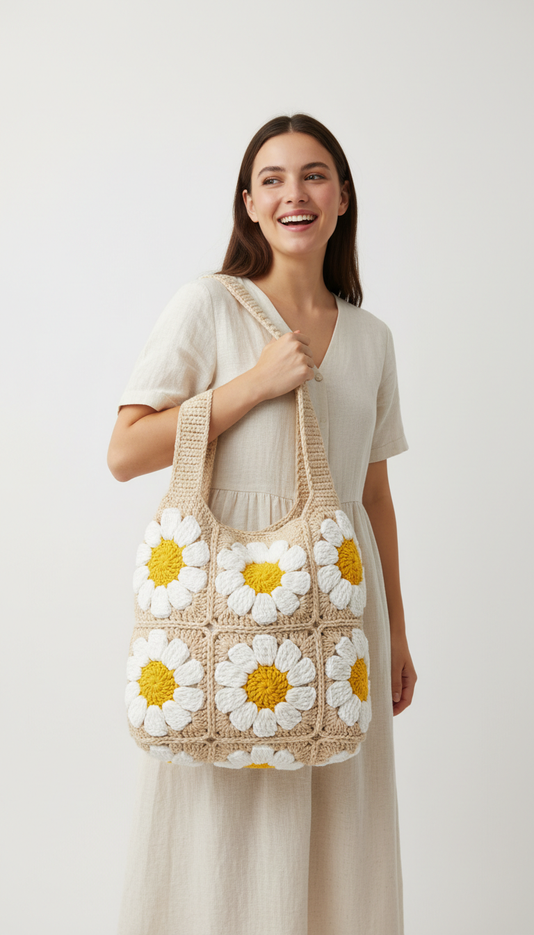 This tote bag isn’t just an accessory; it’s a statement of joy and handmade artistry. Each daisy square is a testament to your creativity, resulting in a unique piece that brightens any ensemble. Imagine carrying your essentials in a bag that radiates sunshine, making every outing a little more special. It’s a fantastic project for intermediate crocheters looking to expand their skills and create something truly beautiful and functional.