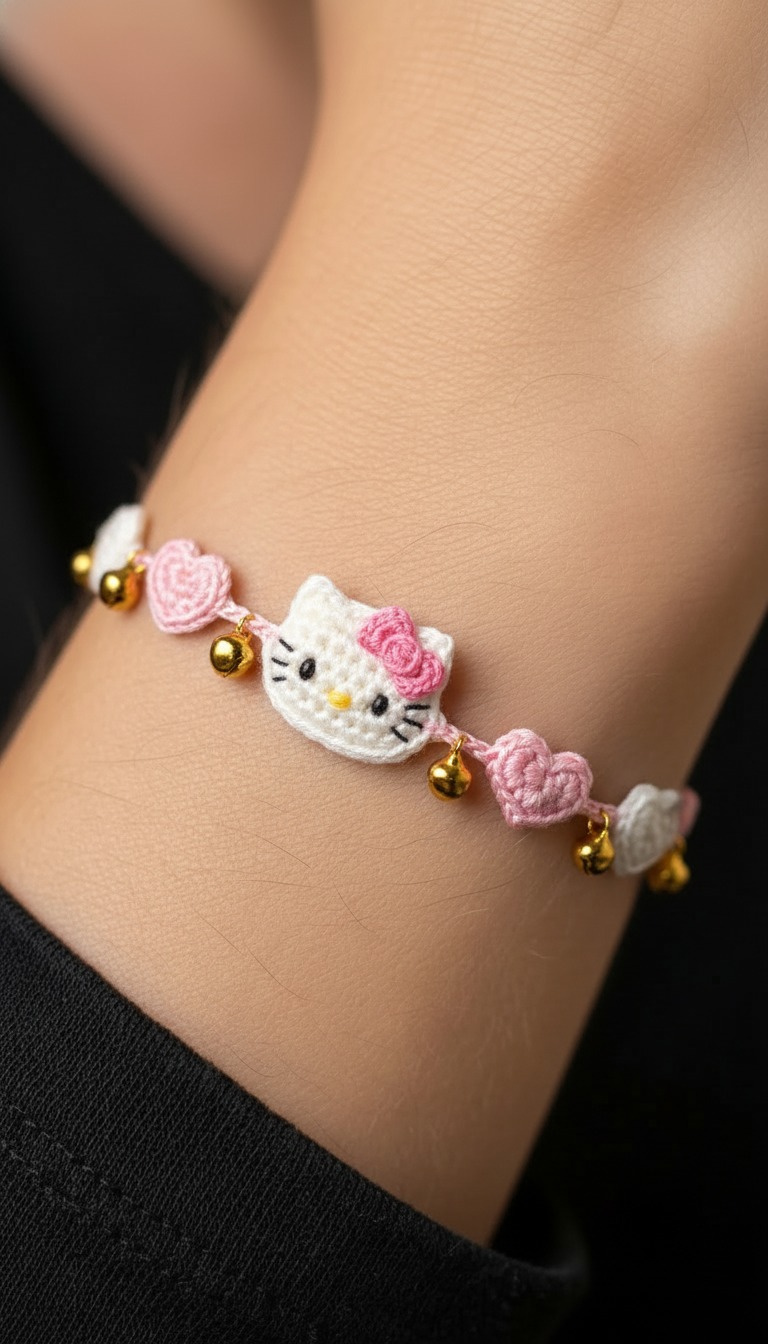 There’s something truly special about wearing a piece of jewelry made with love and your own hands. This pattern lets you create a charming bracelet that reflects your personality, blending the iconic Hello Kitty with sweet little hearts. It’s not just an accessory; it’s a statement of creativity and a perfect conversation starter.