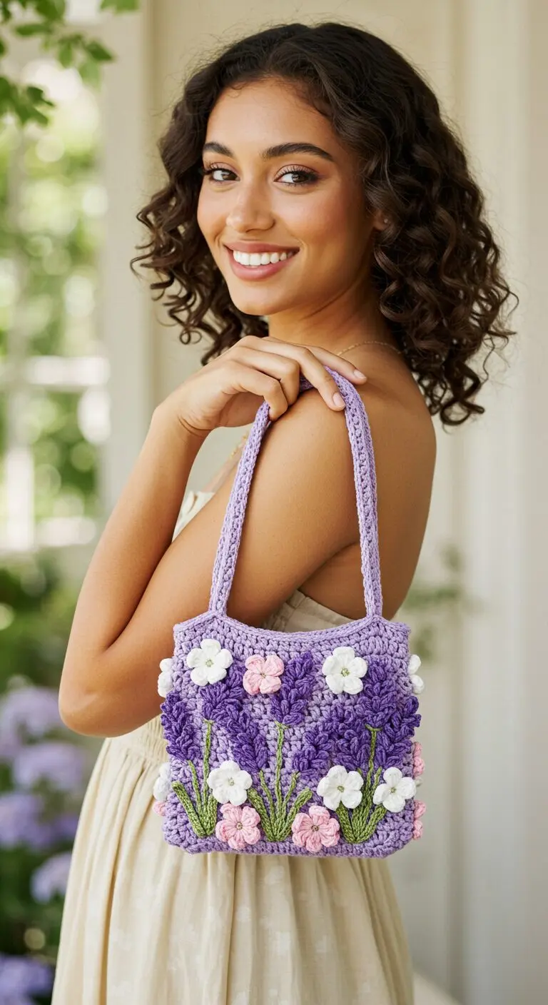 Whether you’re an experienced crocheter looking for a delightful new challenge or eager to create a stunning accessory, this detailed guide will lead you through every step. You’ll learn how to crochet the bag base, sides, beautiful textured lavender stitches, and charming little accent flowers. Get ready to turn heads with your very own handcrafted garden-inspired tote!