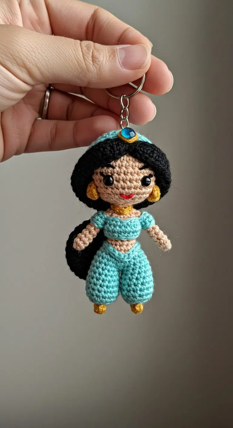 Dreaming of a little magic? This enchanting Princess Jasmine Amigurumi Keychain pattern allows you to create your very own miniature version of the beloved Arabian princess. Perfect for adding a touch of whimsy to your keys, bag, or as a delightful gift for any Disney fan!