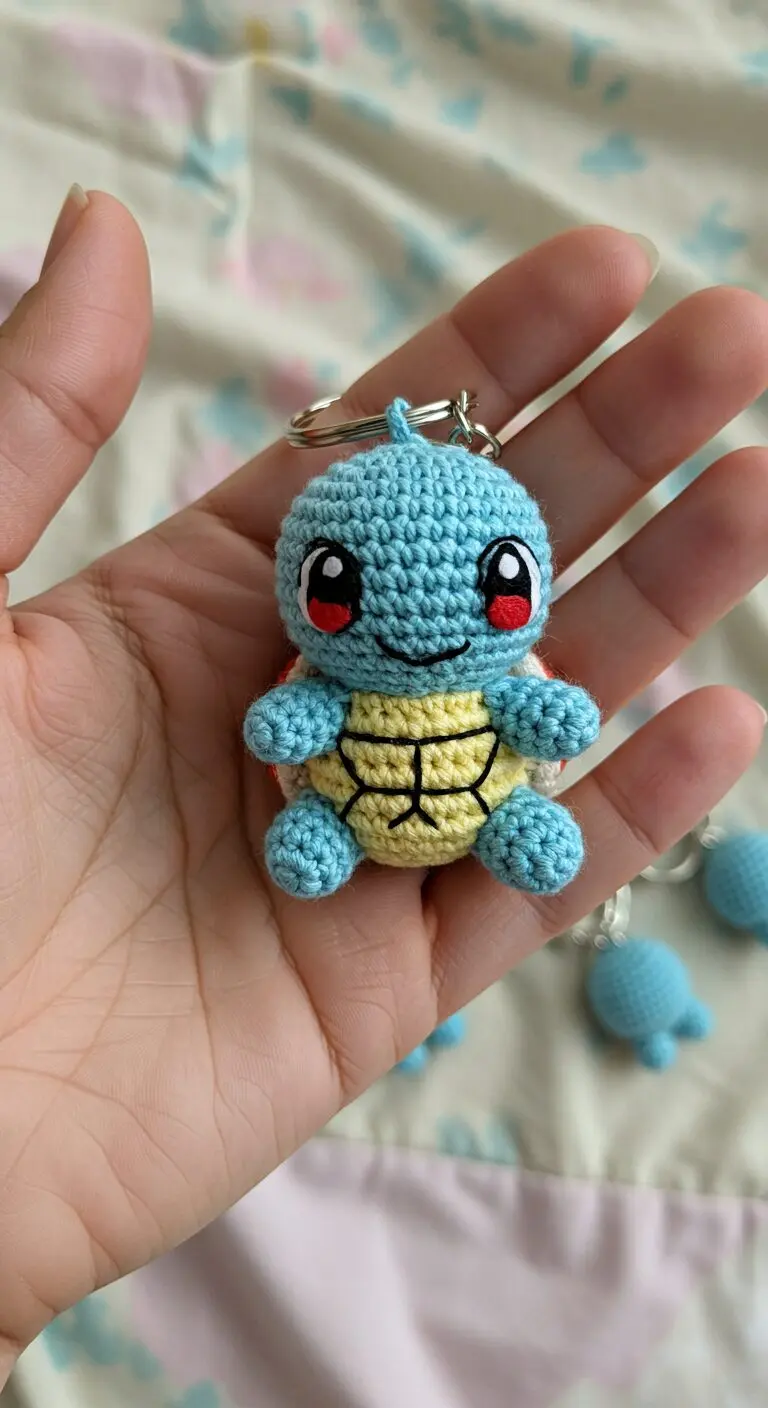 Congratulations! You’ve just created your very own adorable Squirtle amigurumi keychain. Enjoy showing off your new Pokémon buddy!