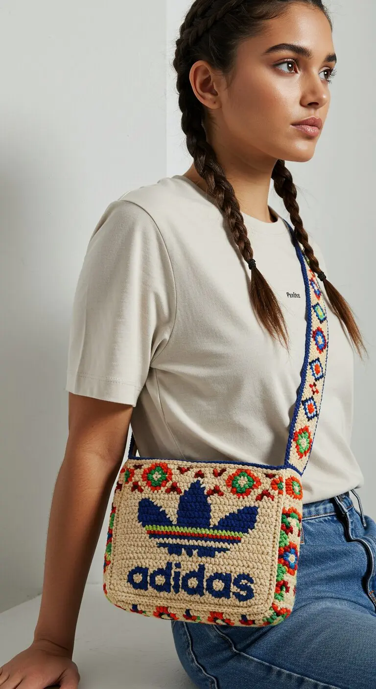 Are you ready to infuse your style with a touch of handmade charm and iconic branding? This unique Adidas-inspired crochet crossbody bag combines sporty vibes with intricate folk art patterns, making it a true statement piece!