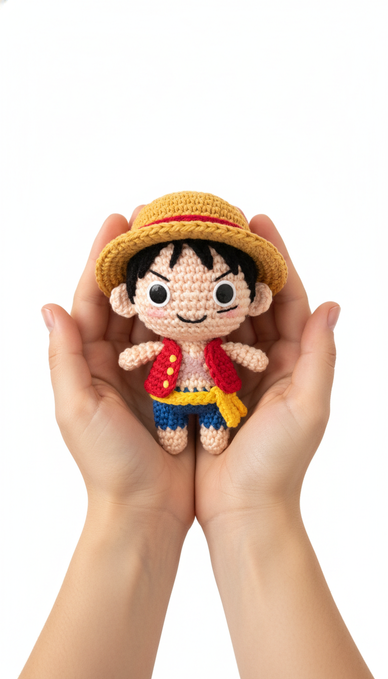 Set sail on an adventure to crochet your very own Monkey D. Luffy amigurumi! This detailed pattern will guide you through creating the iconic Straw Hat Captain, complete with his signature hat, red vest, and big smile. Perfect for One Piece fans, this project brings your favorite pirate to life in adorable, huggable yarn form.