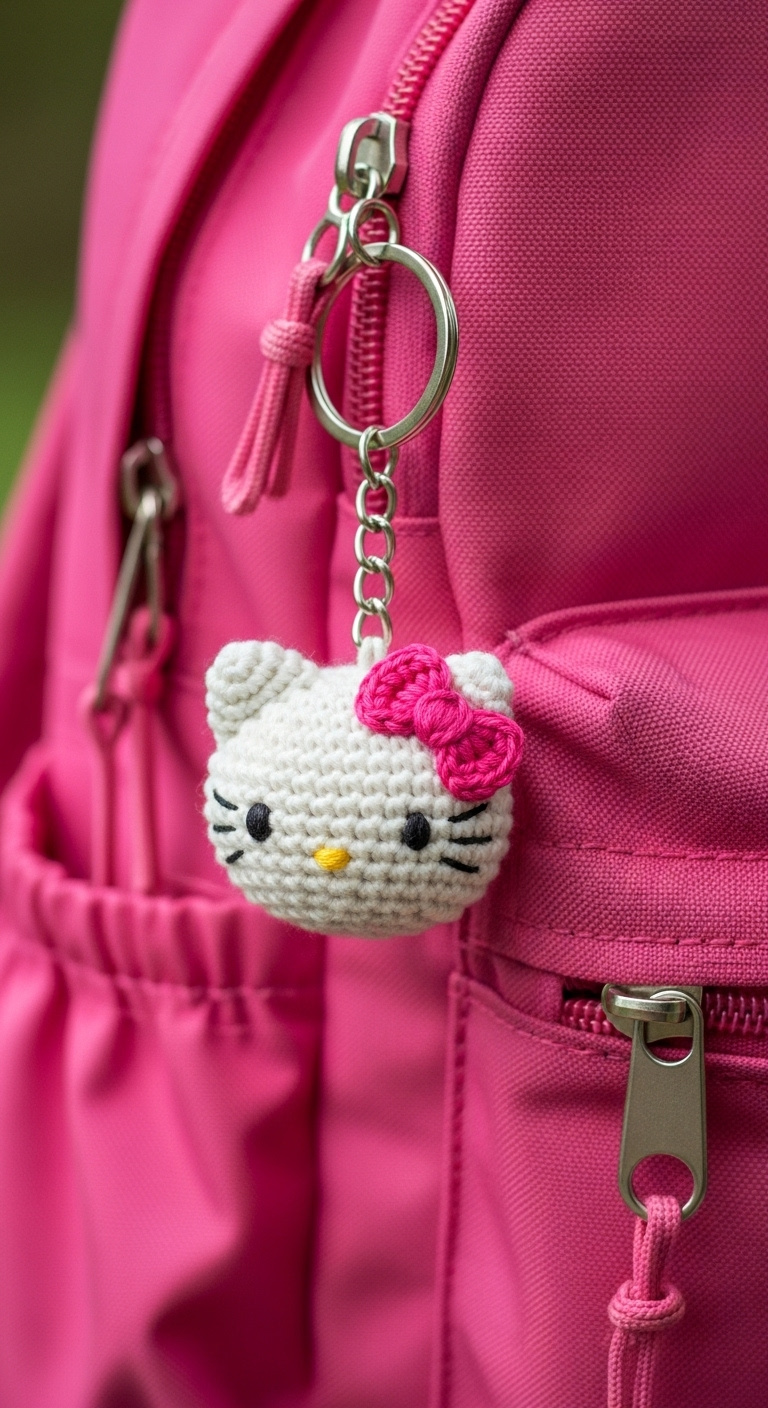 Beyond its decorative appeal, a handmade Hello Kitty keychain serves as a sweet reminder of cherished characters. Its durable craftsmanship ensures it withstands daily use, keeping your keys safe and stylish. These charming accessories also make fantastic gifts for fans of all ages, bringing joy and a personal touch. Whether for yourself or a loved one, a crochet Hello Kitty keychain is a delightful way to personalize belongings. It adds a pop of color and character, making your backpack unmistakably yours.
