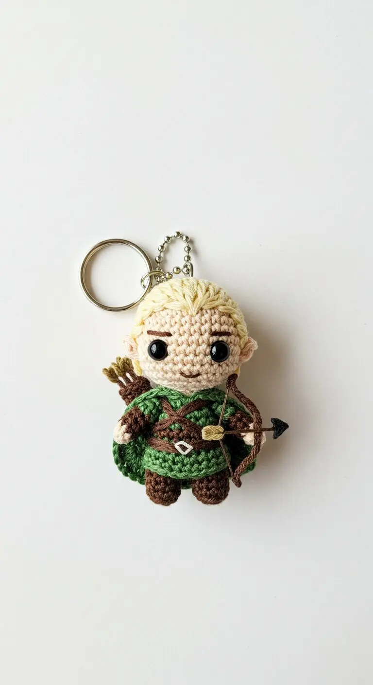 Discover the enchanting world of handmade crafts with this delightful crochet keychain. This intricately designed amigurumi figure, resembling a skilled elf archer, adds a touch of fantasy to your everyday essentials. It’s not just an accessory; it’s a miniature work of art that can personalize your keys, bag, or backpack. The detailed craftsmanship makes this crochet keychain a truly unique item, perfect for fans of fantasy tales.