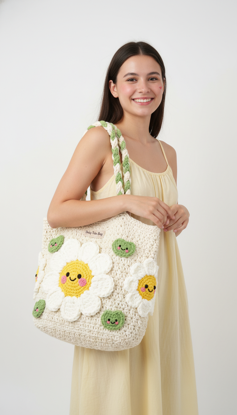Beyond being a stylish accessory, this Daisy Sunshine Tote Bag is a statement of handcrafted joy. It offers a wonderful opportunity to personalize your style, express creativity, and carry a piece of your happy spirit wherever you go. The process of making it is as rewarding as using it, bringing a sense of accomplishment and a unique item to your wardrobe.